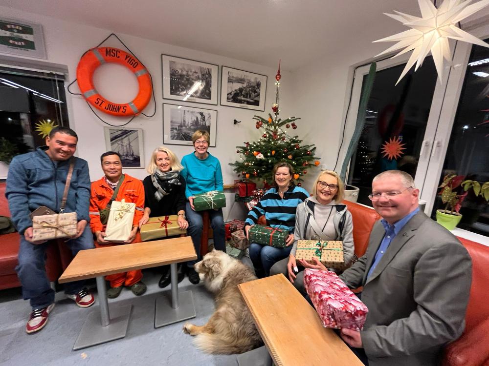 Übergabe der Weihnachtspäckchen für Seeleute in der Seemannsmission in Brake
